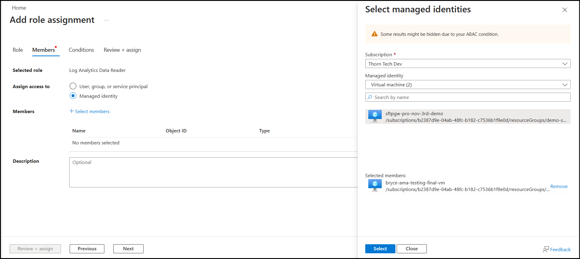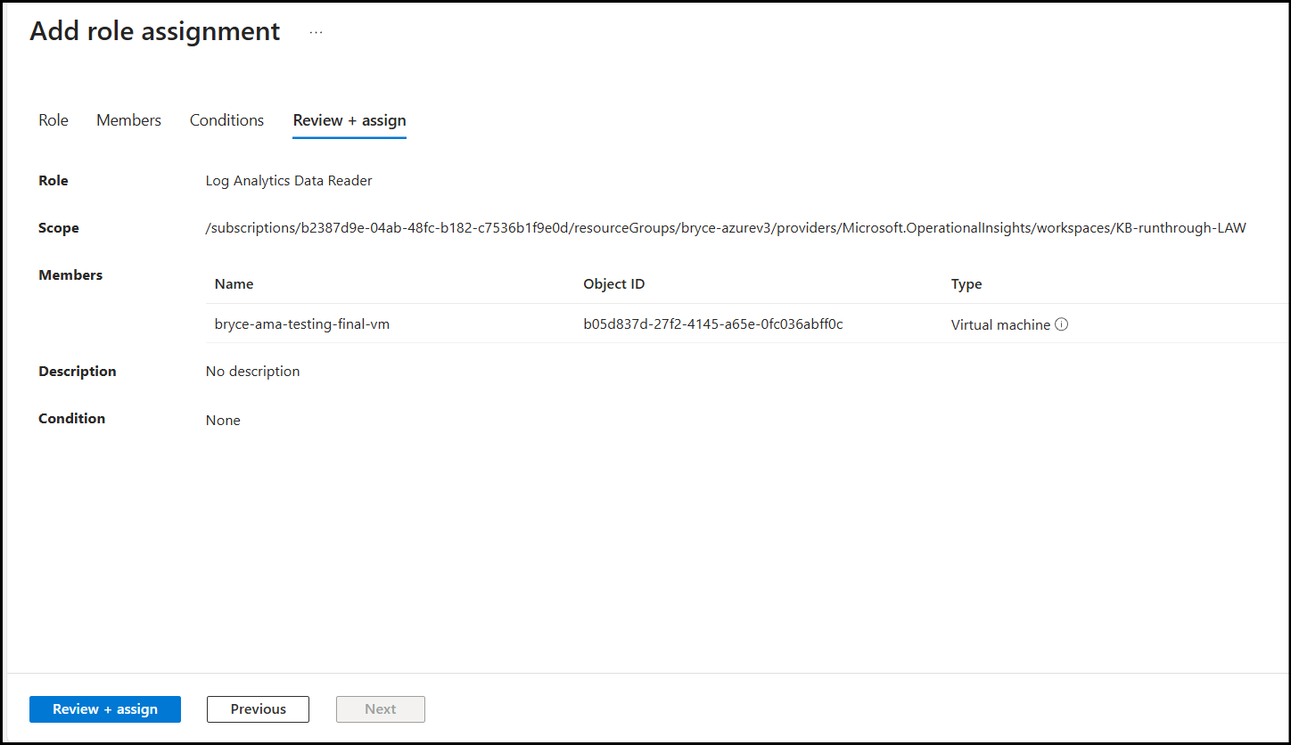 In order for your instance to be able to read the logs from your Log Analytics Workspace, we need to assign specific permissions to its managed identity.